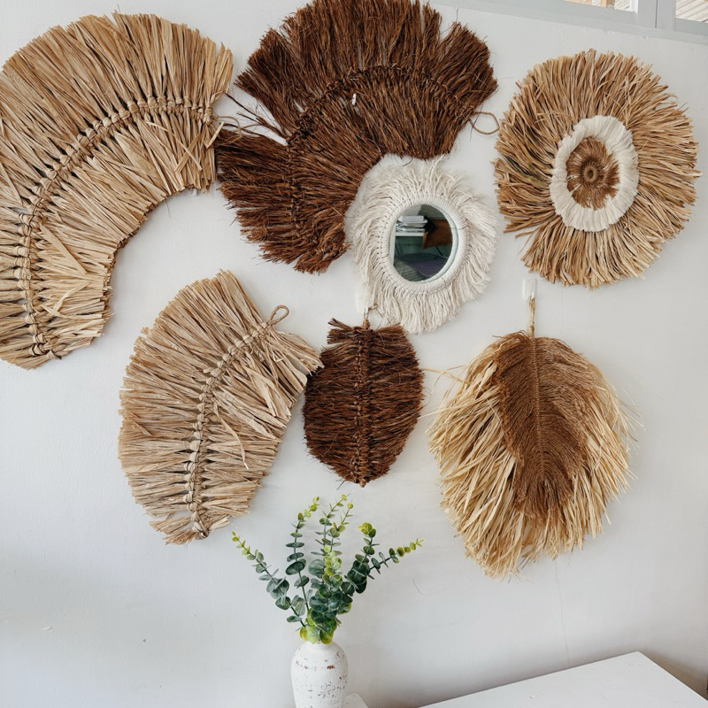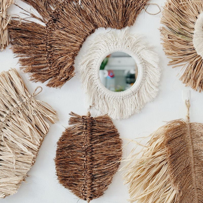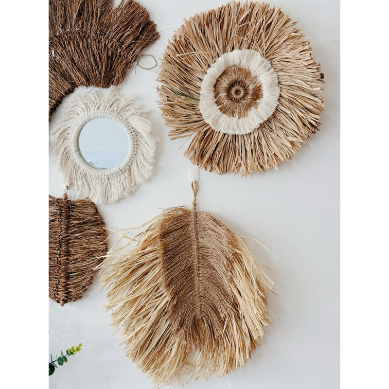 ◺ Presenting the Marilag Boho Wall Hang Set. A set of compose of wall hang that are made of Rafia fibers, abaca fibers, macrame and jute twines. Can be stand alone decor or pair with other wall hang! Perfect as set. Instantly transform a room to make it boho theme, homy atmosphere or resort feels.