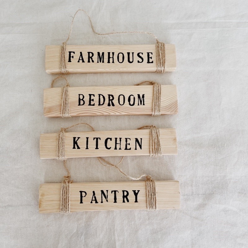 ◺ A rustic farmhouse wooden label hang decor for every room in your house. You can also customize it with your child’s name or your surname.